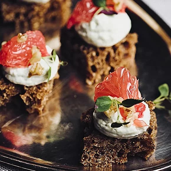 Kanapé med ädelost och grapefrukt