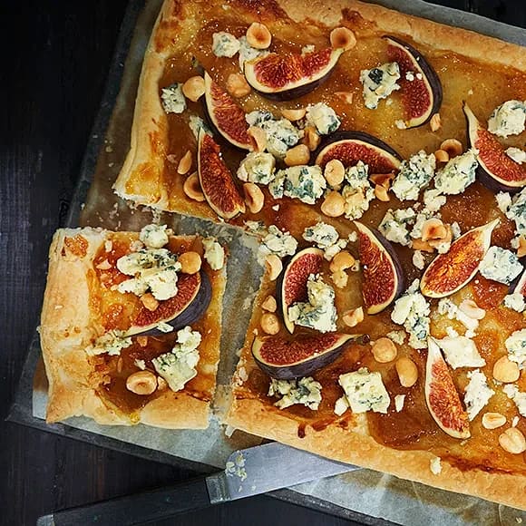 Smördegssnittar med fikon och ädelost