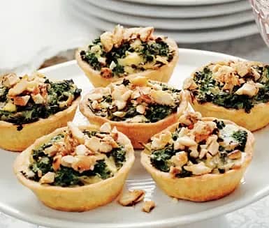 Små smördegspajer med gräddkokt grönkål och ädelost