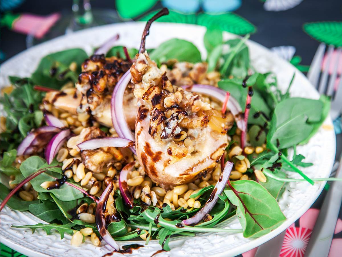 Rostad päronsallad med ädelost och valnötter