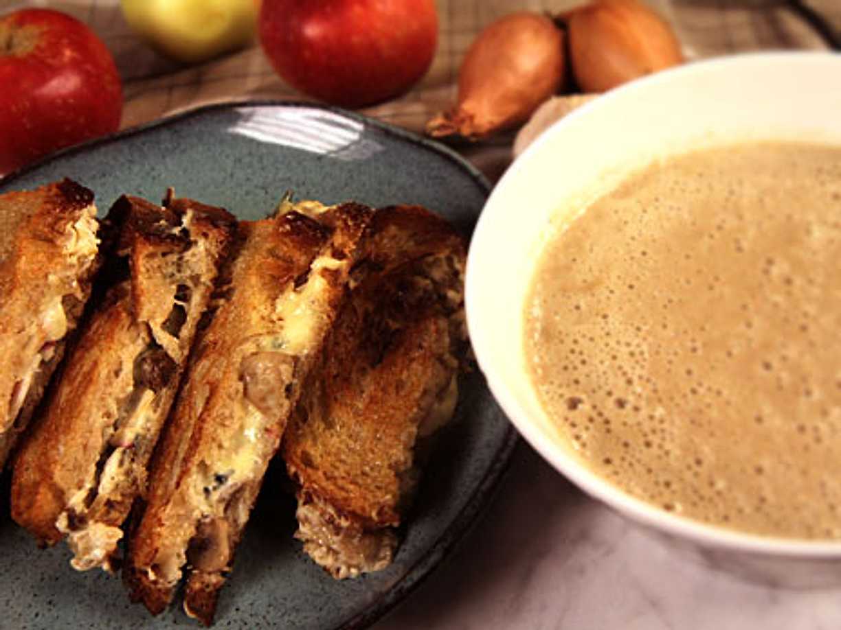 Svampsoppa och varm macka med ädelost