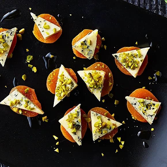 Aprikossnitt med ädelost och pistage