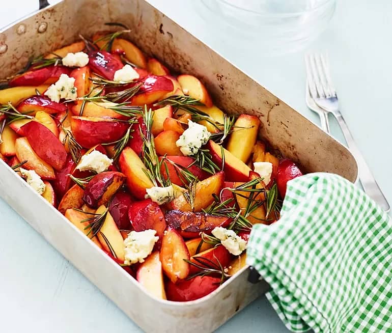 Rosmarinstekt nektarin med crema di balsamico och ädelost