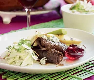 Ädelostfylld lövbiff med snabb ättiksgurka