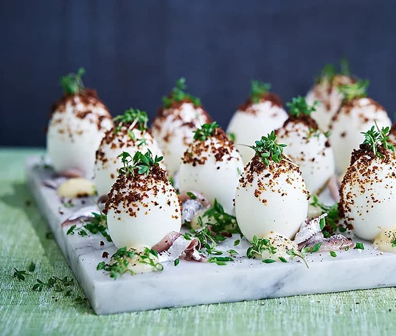 Ägg med kavringskrisp och ansjovismajonnäs