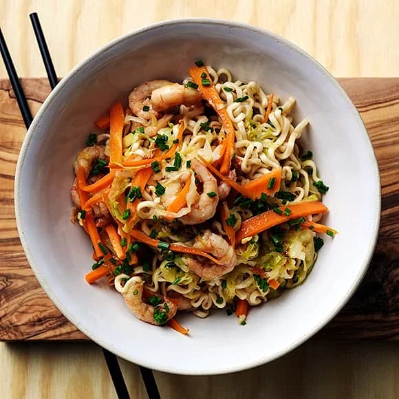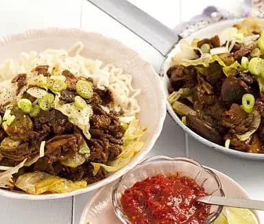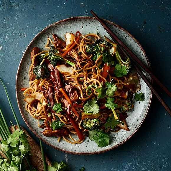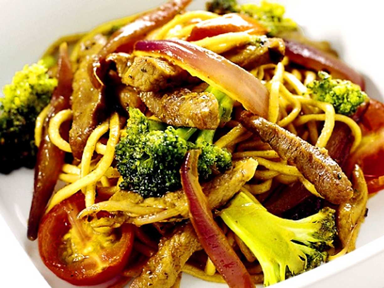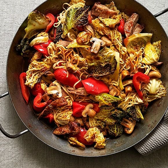 Teriyakiwok med älgskav, svamp och äggnudlar