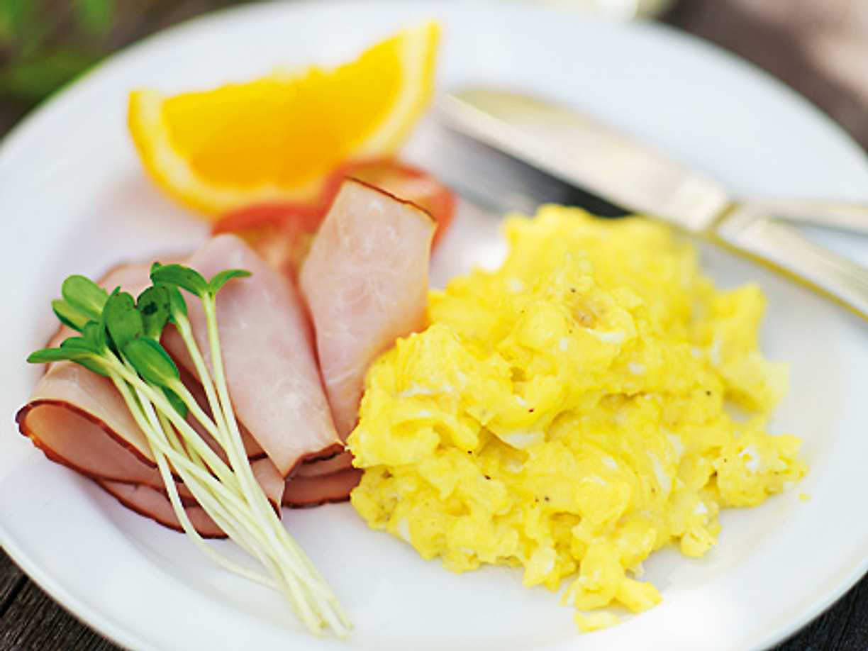 Krämig äggröra med skinka