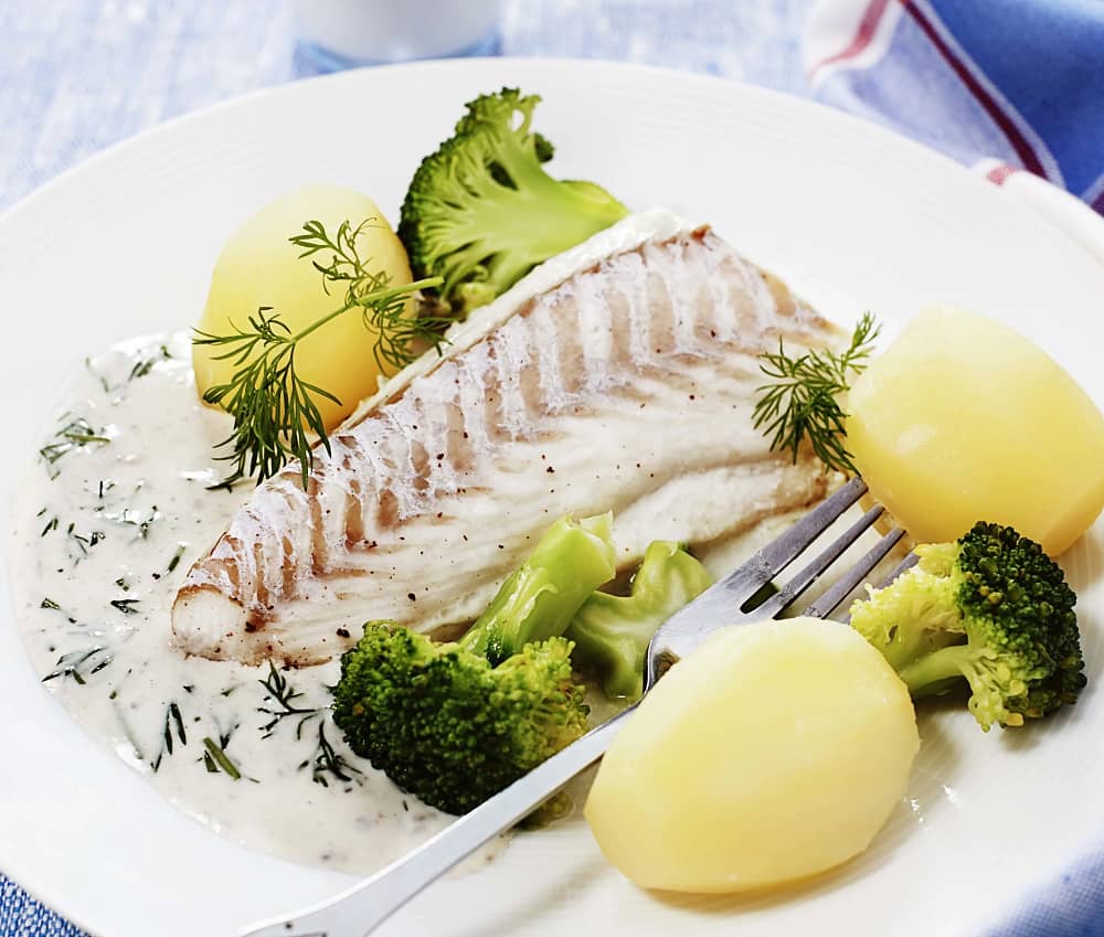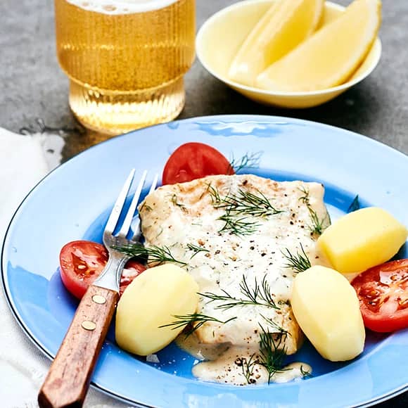 Ugnsbakad sej med ansjovis- och dillsås