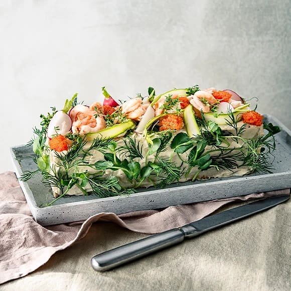 Smörgåstårta med ansjovis och räkor