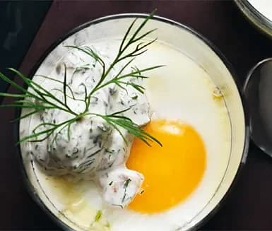 Varma ägg i glas med purjolök, ansjovis och dill