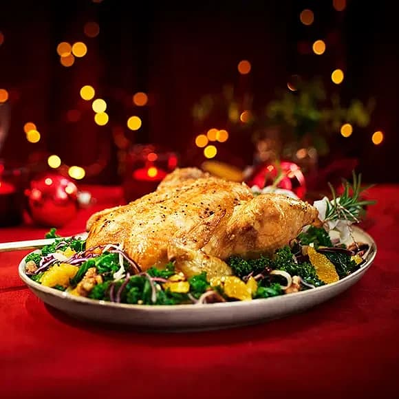 Helstekt Bosarpkyckling fylld med ingefära och äpple