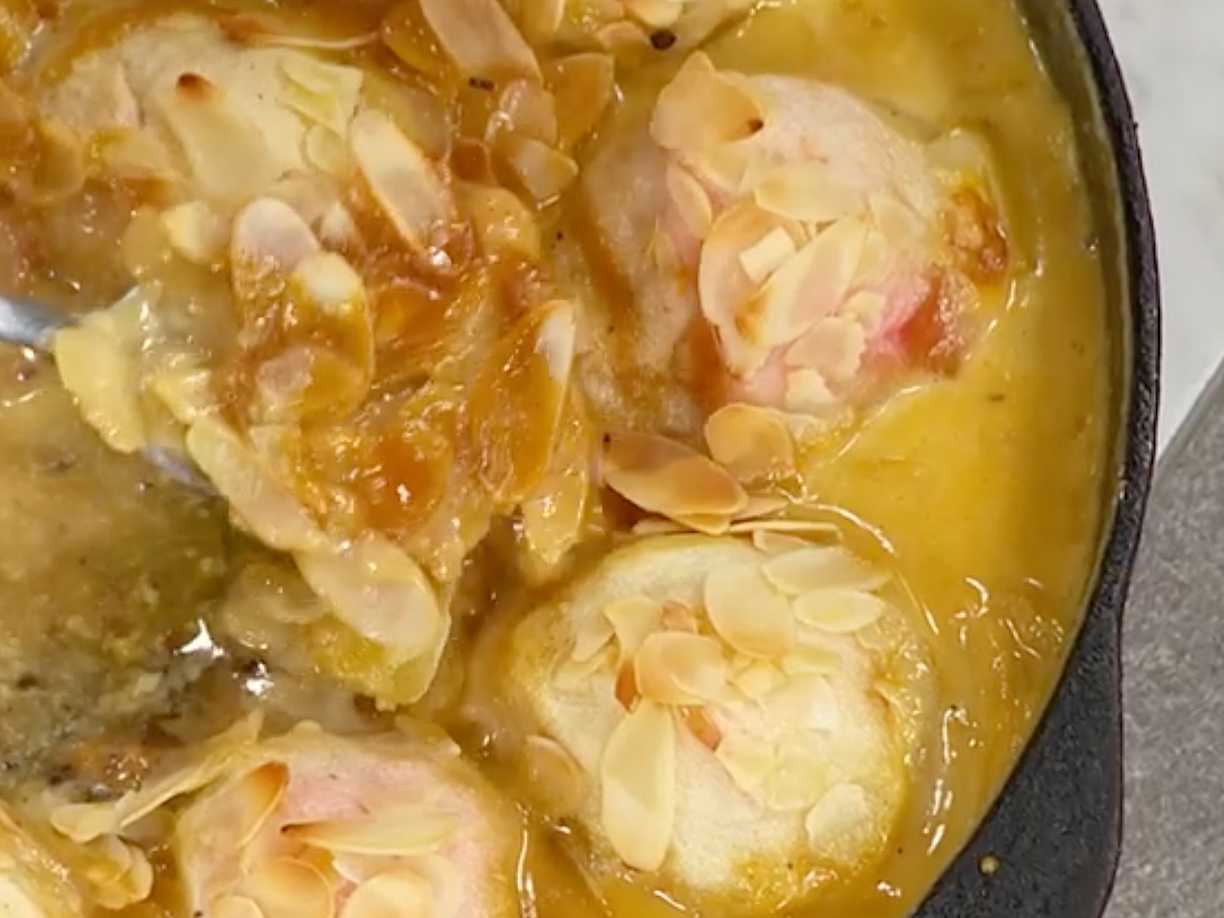 Lusselångpanna med äpple och mandelmassa