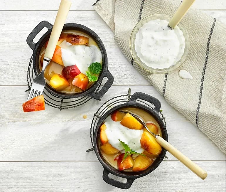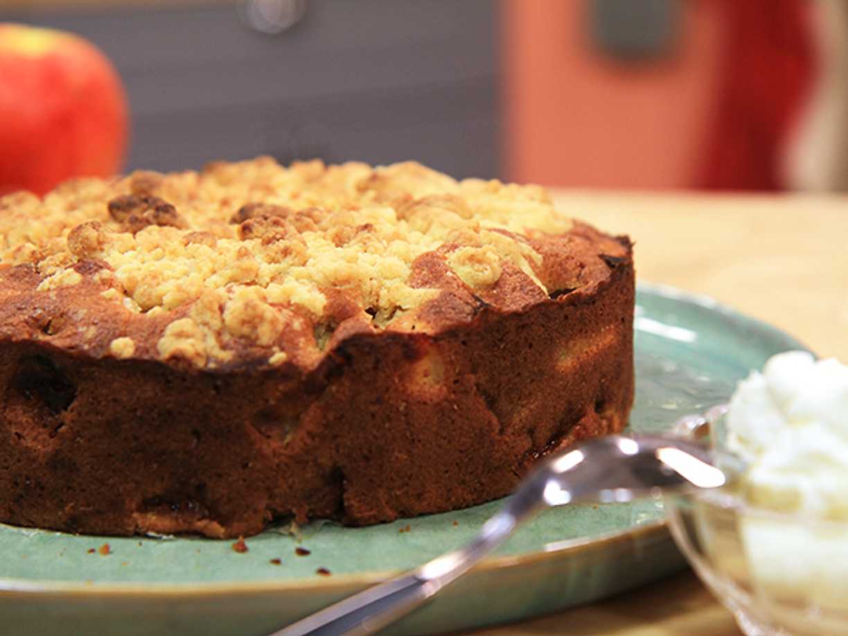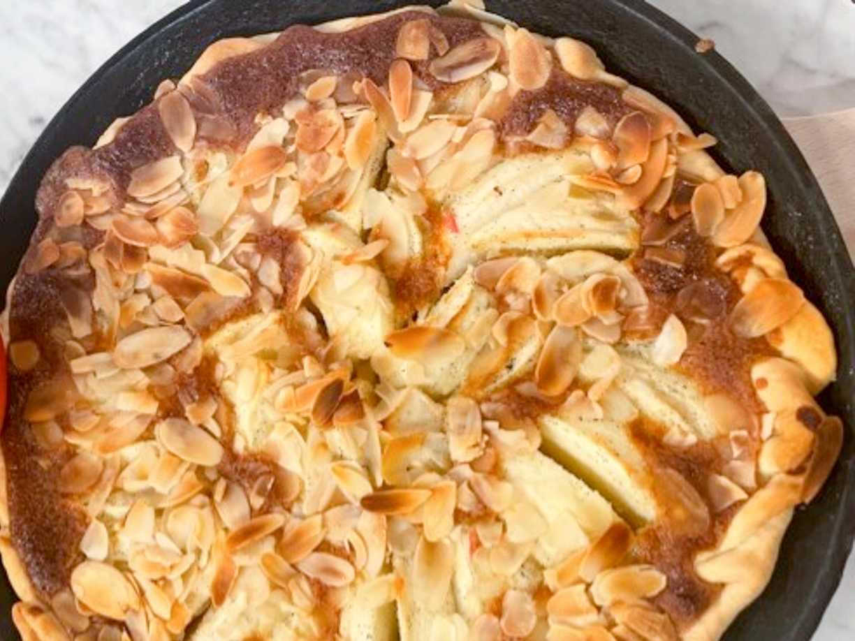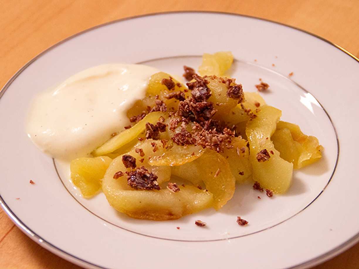 Calvadosflamberade äpplen med råkräm och kanelcrunch