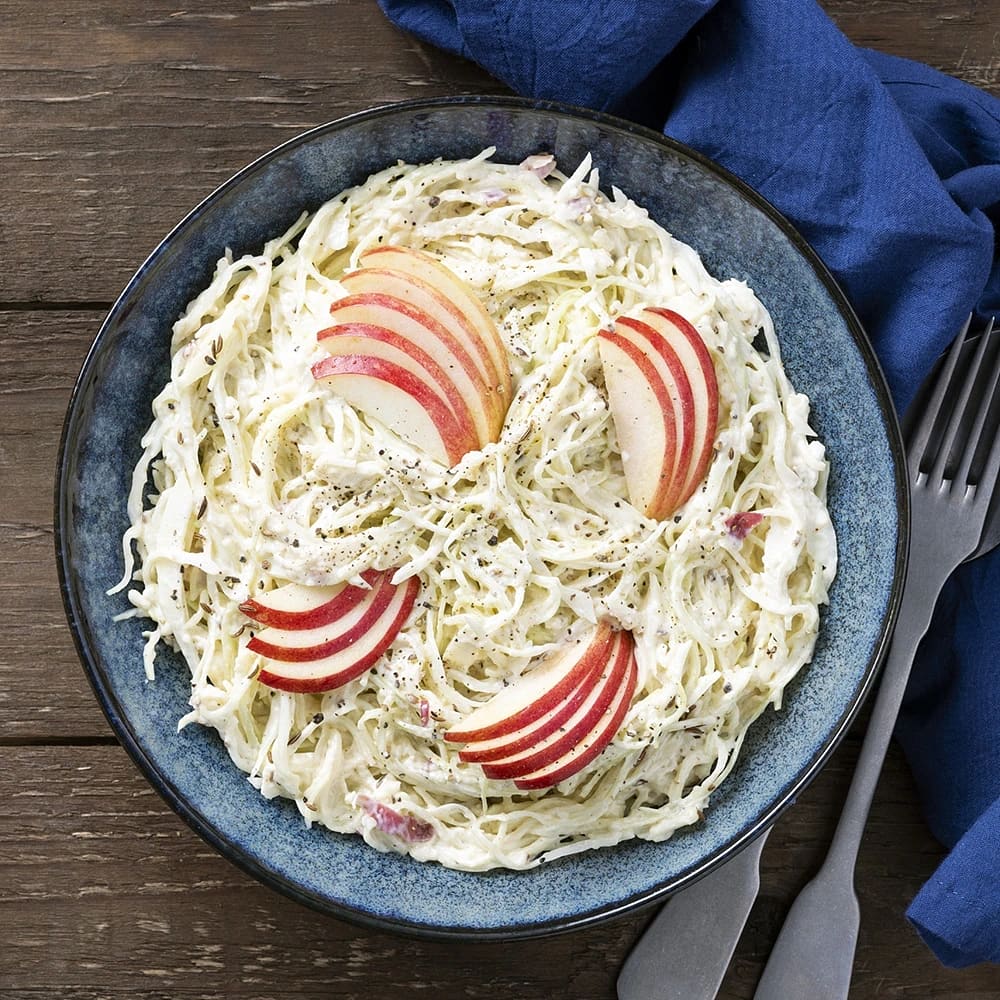 Lyxig falukorv med jordärtskocka, blomkål och äpple
