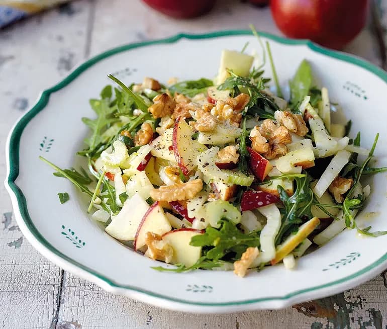 Supersallad med bönor, korn, jordärtskocka och äpple