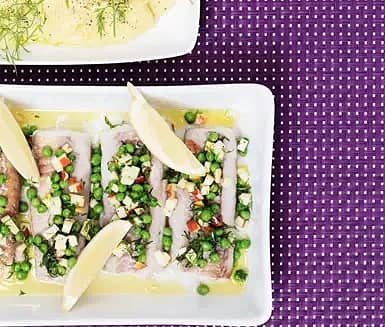 Ugnsbakad sej med palsternacksmos samt äpple och ärter i dill