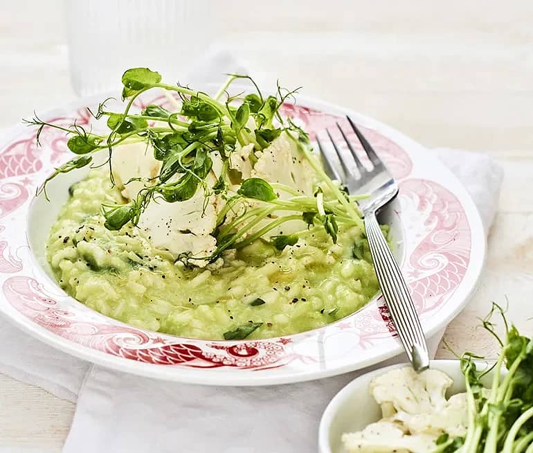 Ärtrisotto med rostad blomkål och dragon