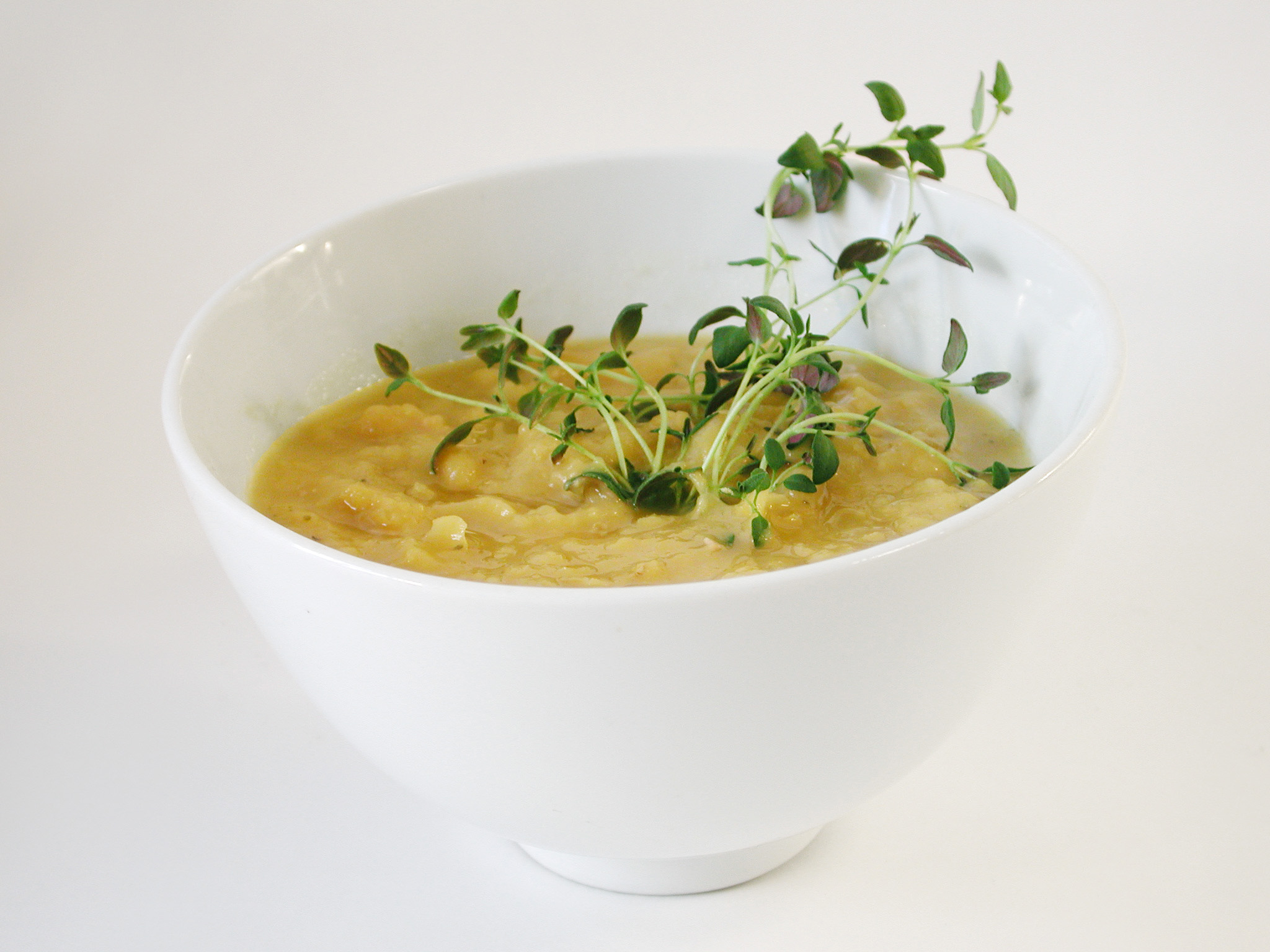 Grön ärtsoppa, Crème Nignon, med pepparrot och bacon