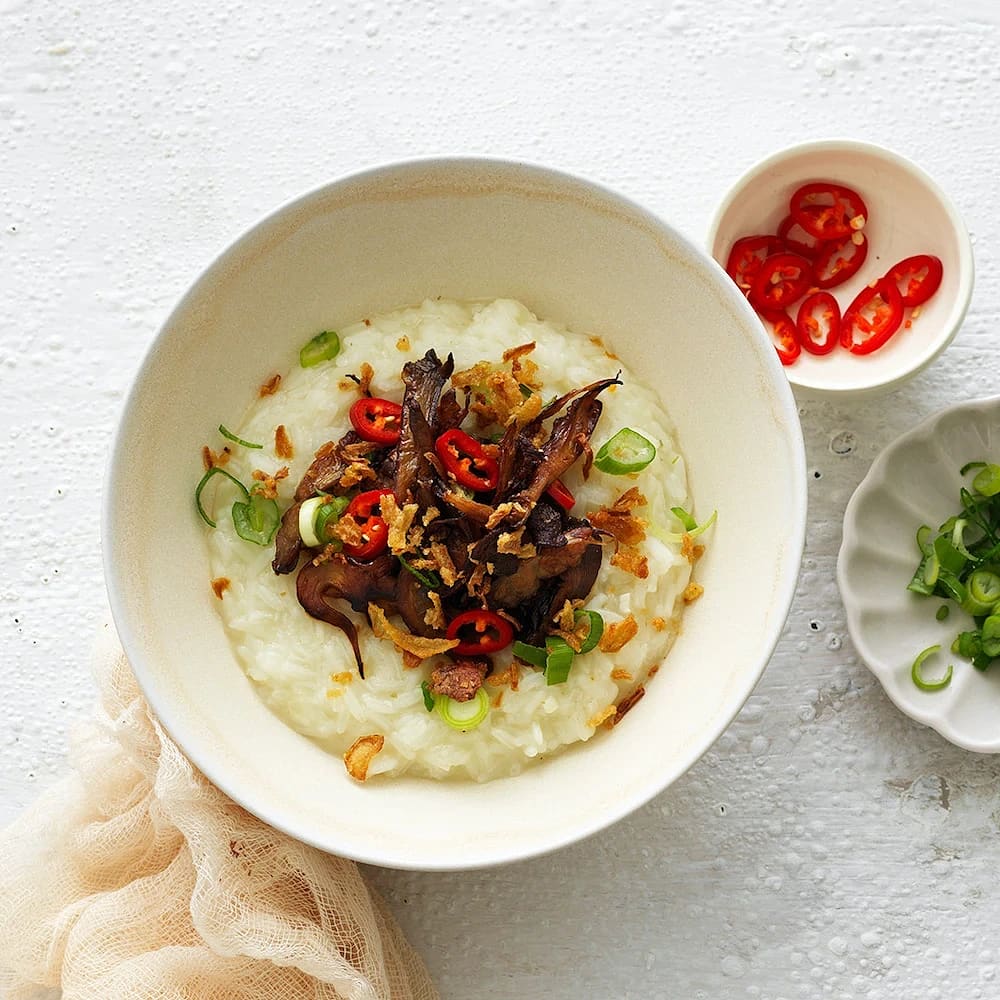 Congee – Asiatisk risgröt med ingefärssvamp