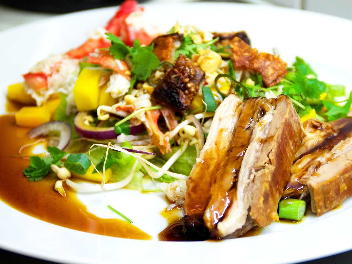 Melon- och jordgubbssallad med feta och asiatisk dressing