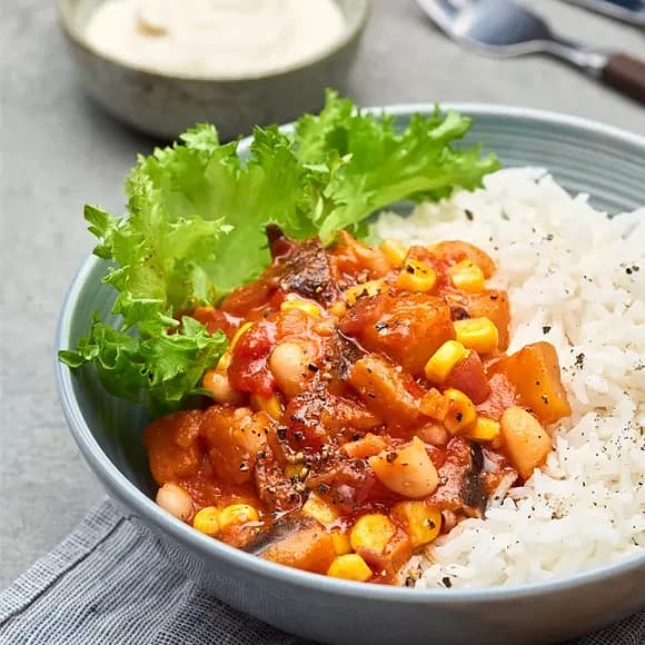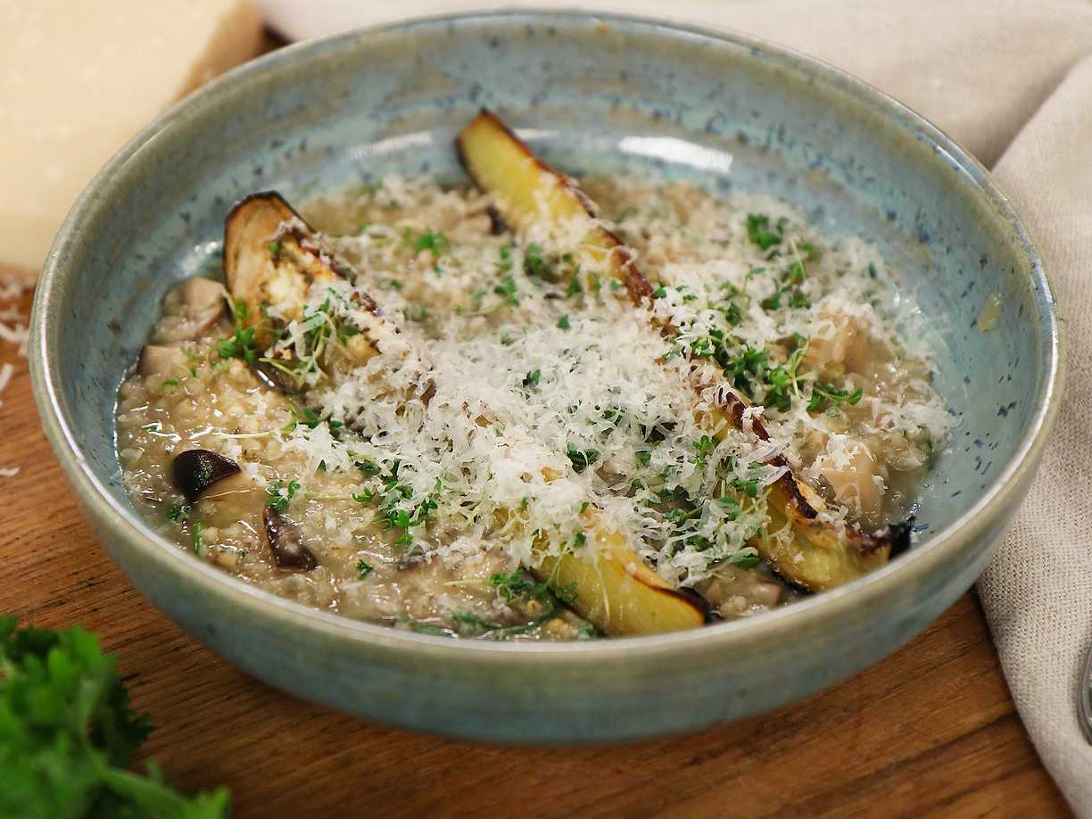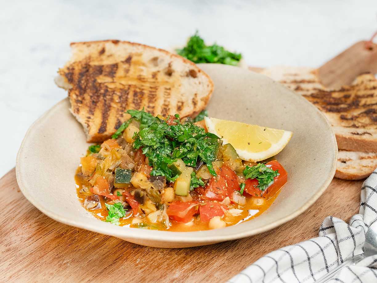 Kikärtsgryta med champinjoner, aubergine och zucchini