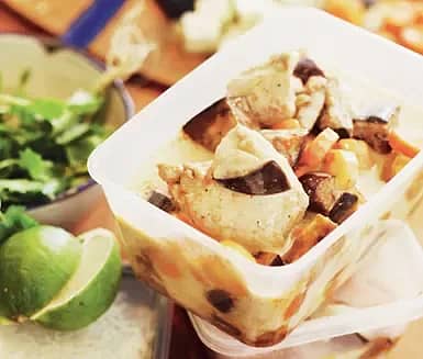 Aubergine- och kikärtscurry med spenat- och kardemummaris