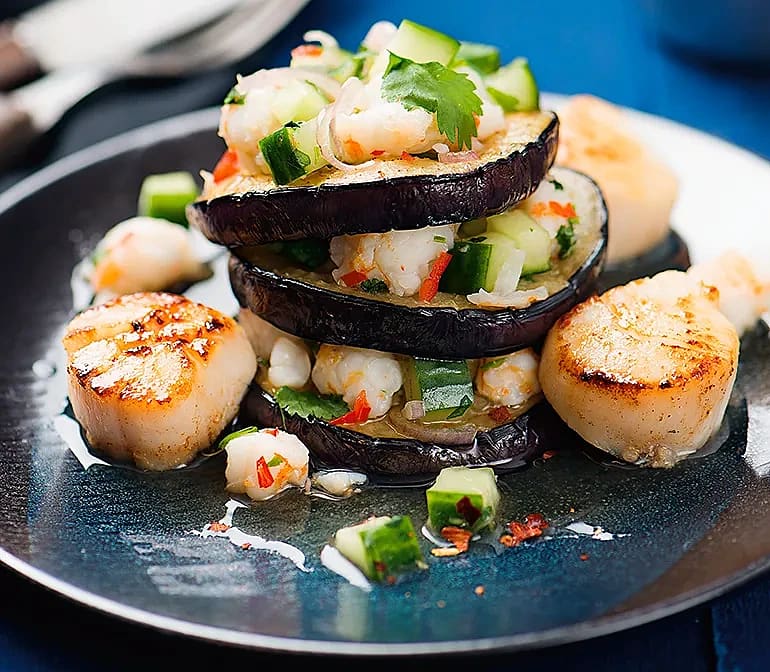 Kryddstekt hällefilé med aubergine och tzatsiki