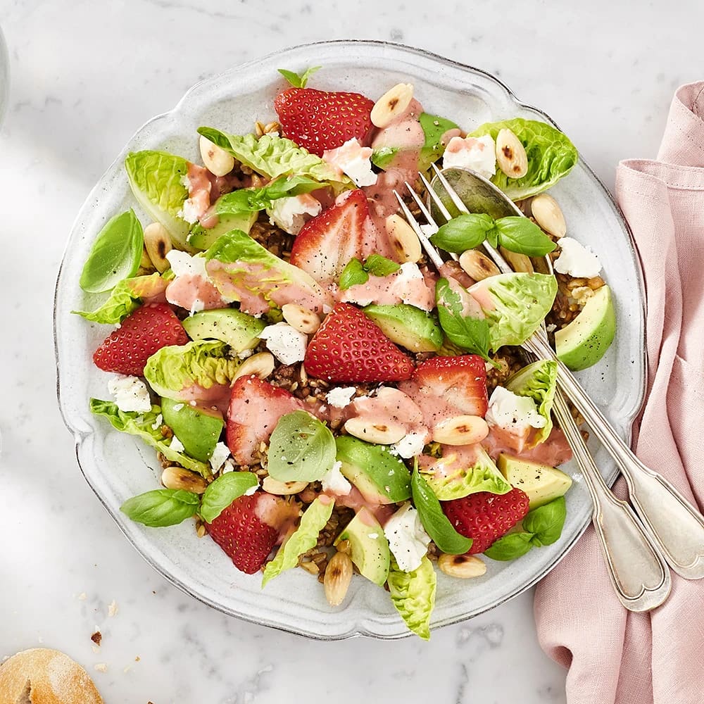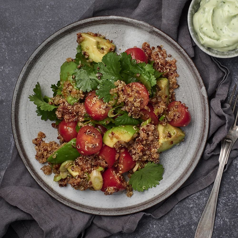 Quinoasallad med oumph, fetaost, avokado och het mangodressing