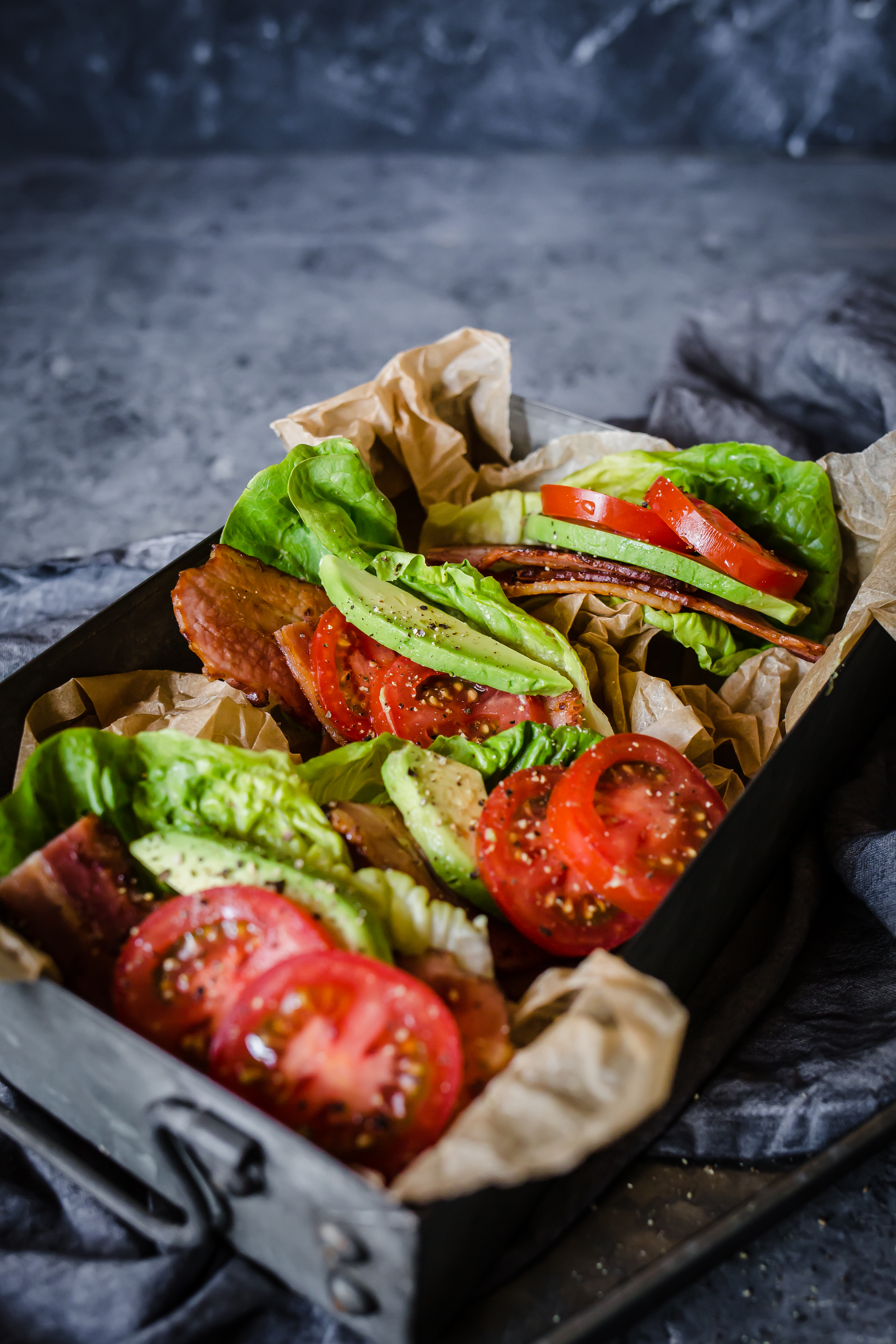 Vegetarisk "BLT" med portabellosvamp och avokado
