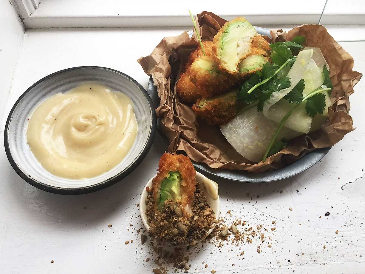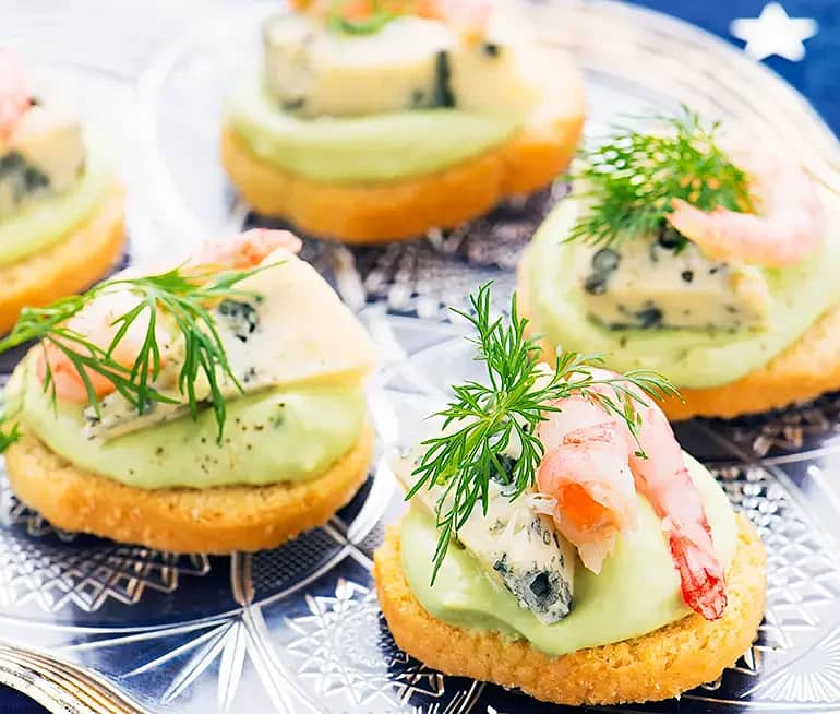 Avokado med crème fraice, rödlök och röd eller svart kaviar