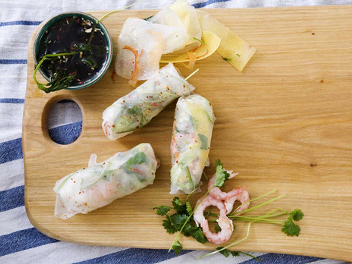 Färska vårrullar med räkor och avokado