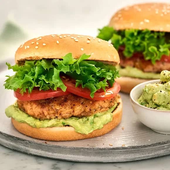 Kycklingburgare med avokadoyoghurt och grillad mango