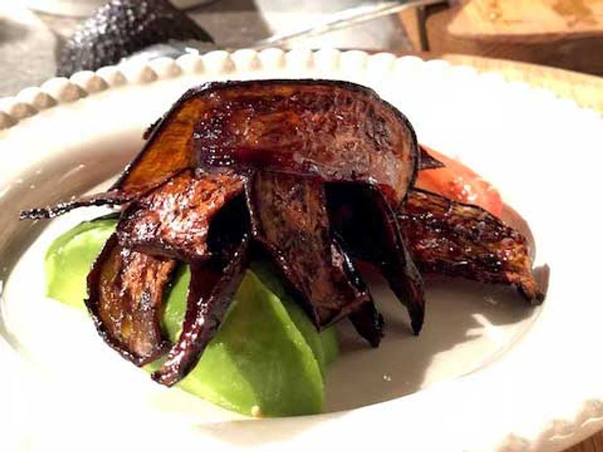 Grillad sallad med bacon, avokado och hasselnötsdressing
