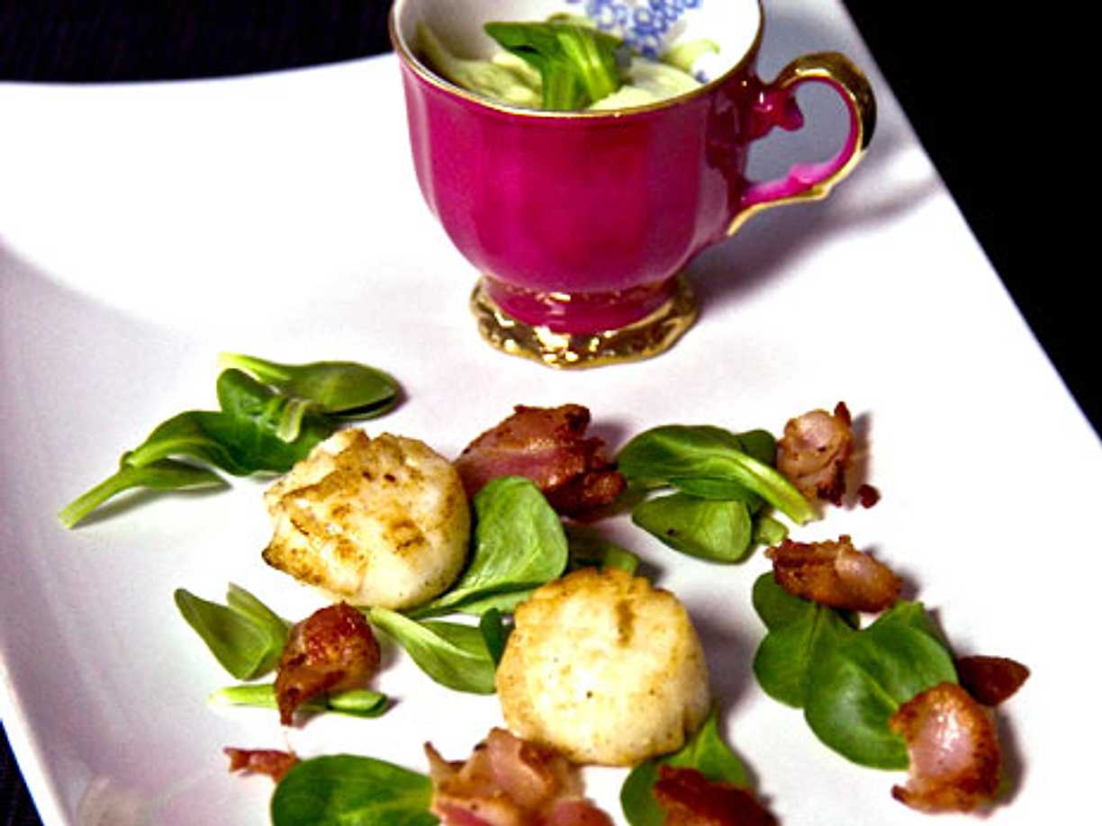 Halstrade pilgrimsmusslor med bacon