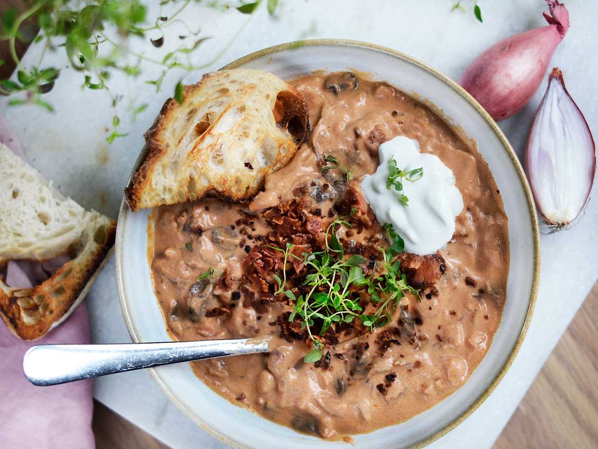 Svampsoppa med bacon och crème fraiche