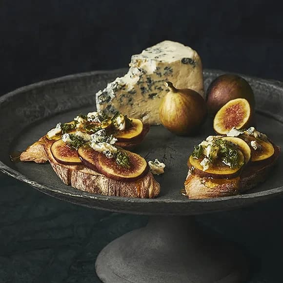 Rostad baguette med fikon, ädelost och rosmarinhonung