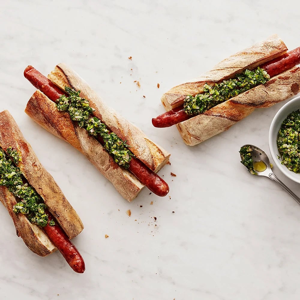 Choripan i baguette med pistage-chimichurri