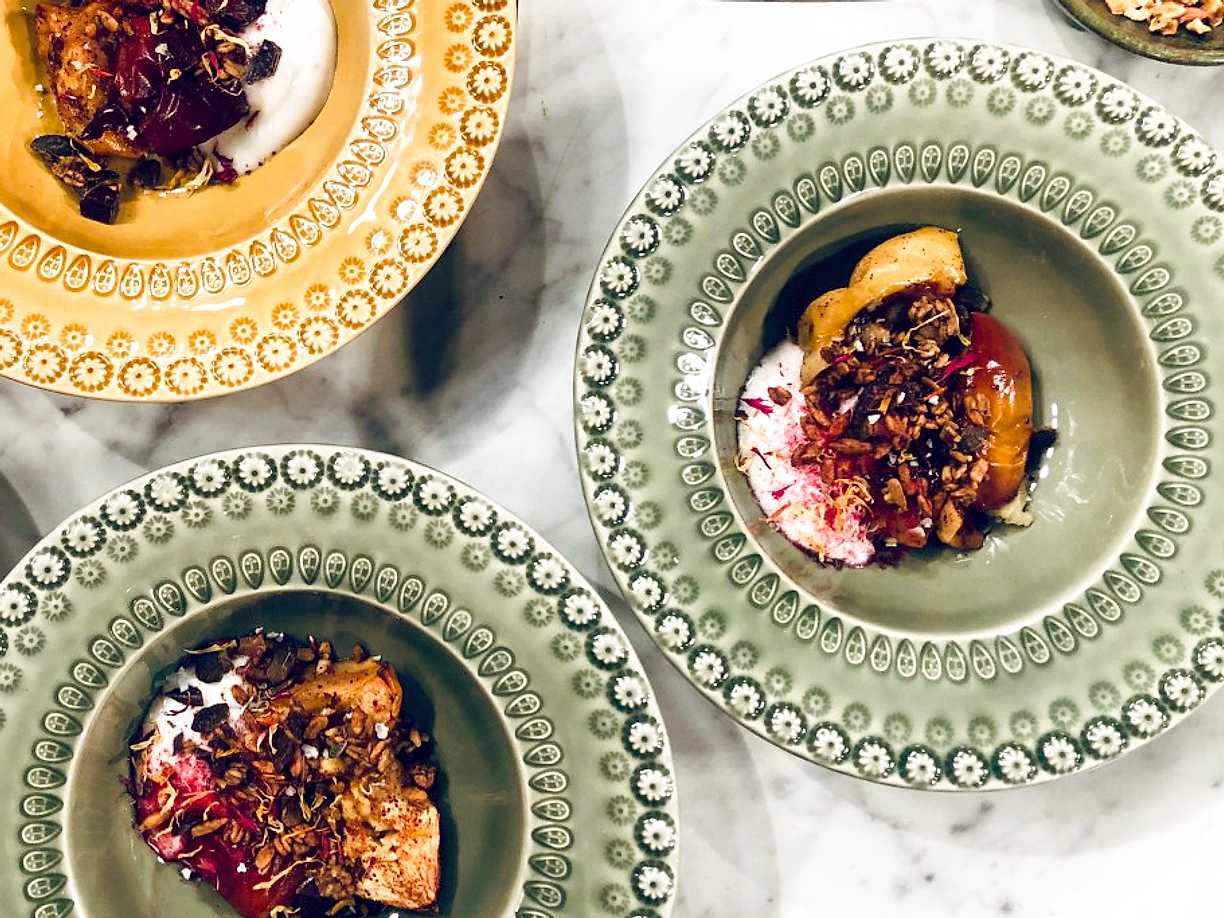Bakade äpplen med granola, lingonpulver och kokosyoghurt