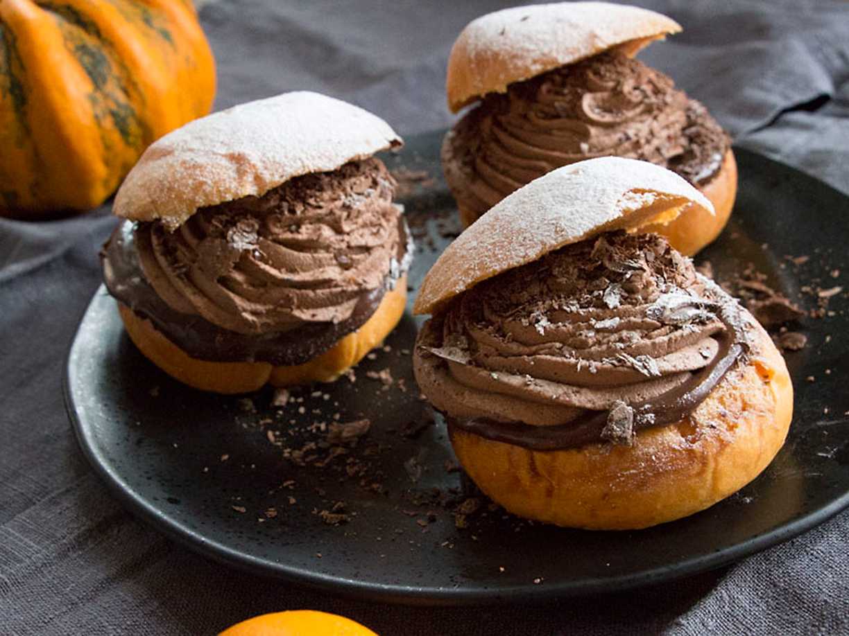 Halloween-semlor med nutellakräm och chokladgrädde