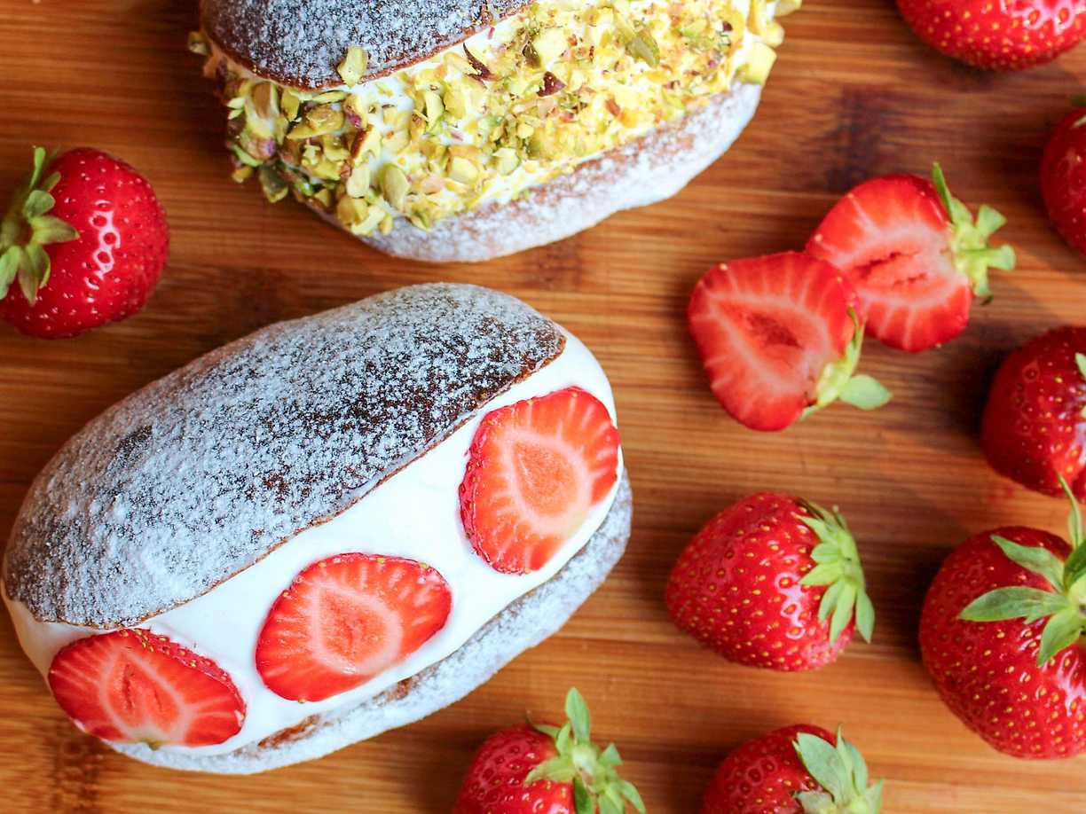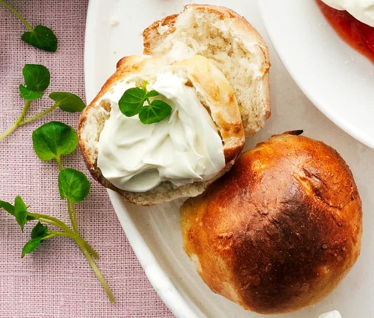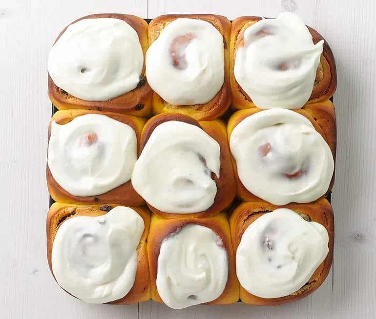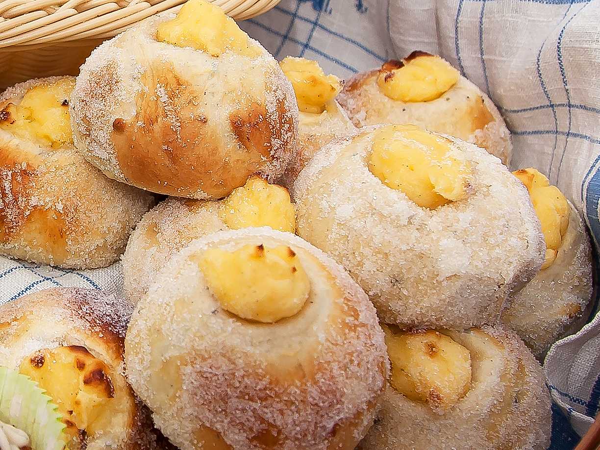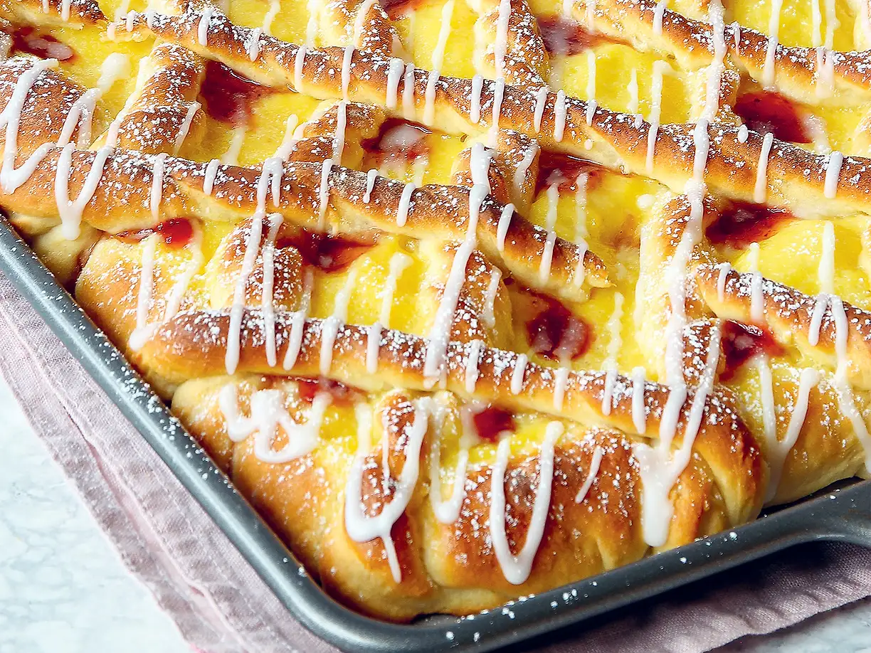 Äpple- och kanelkrans, toscabullar med pecannötter, blåbärs- och vaniljbullar