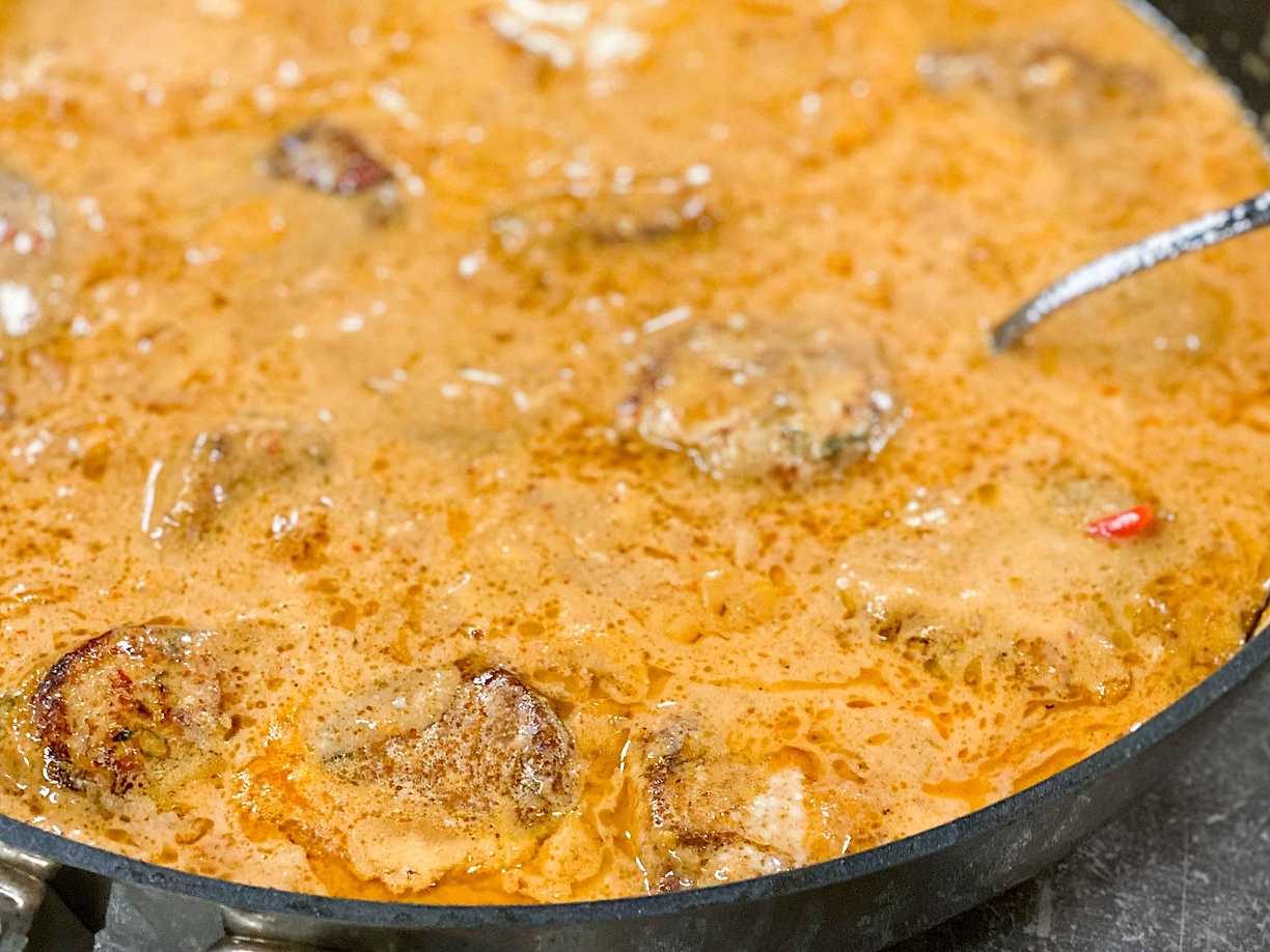 Stekta äpplen med kanelmandelknäck och vaniljglass