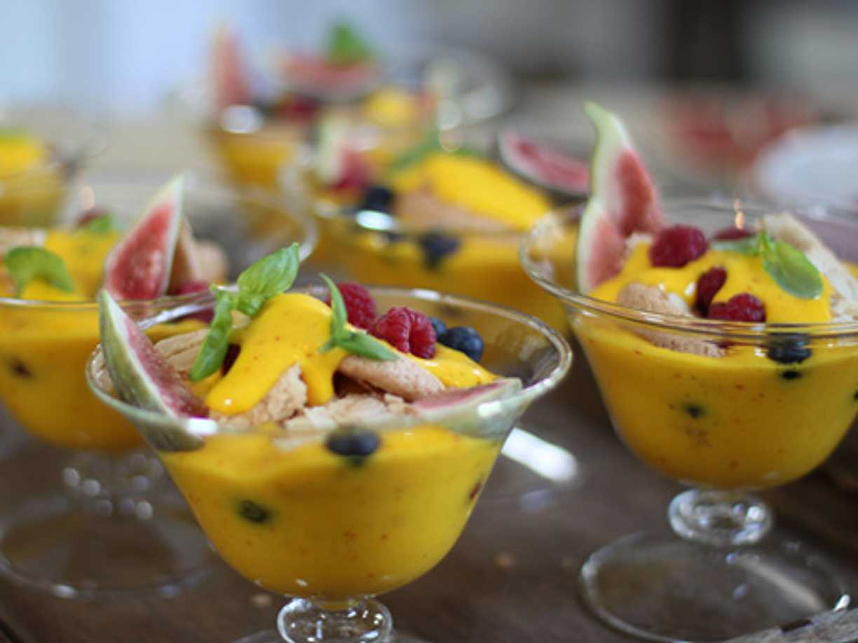 Trifle med saffranssabaglione med färska fikon och bär