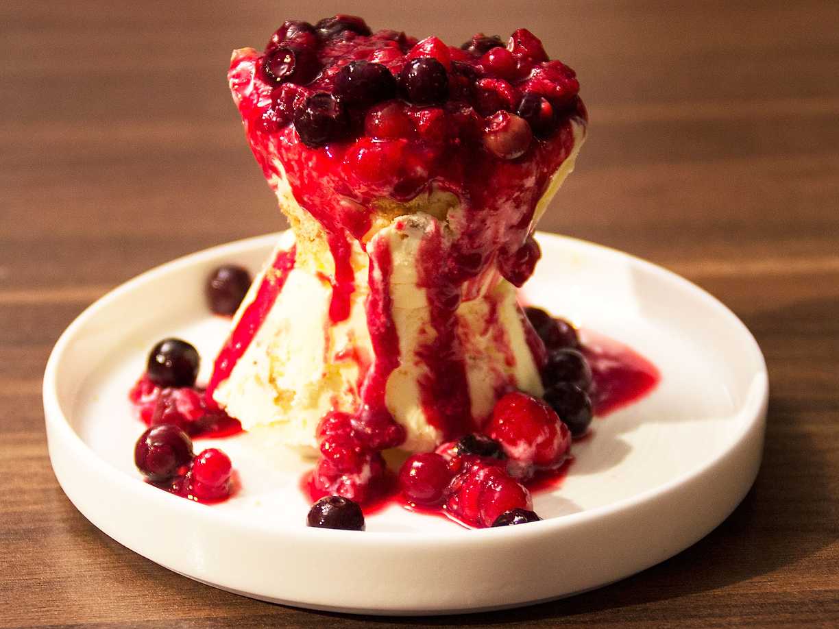 Leilas Glace au four med rommarinerade bär och mandelmaräng