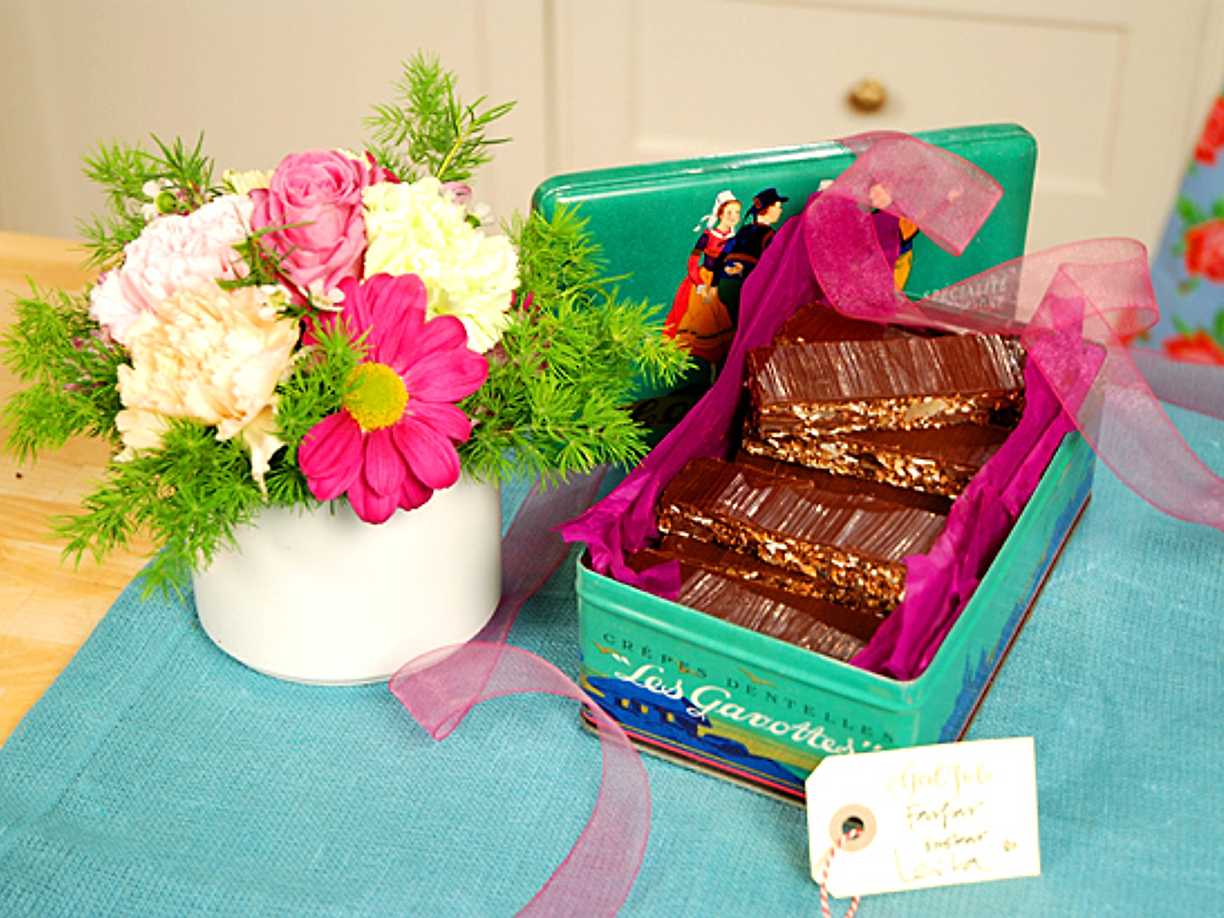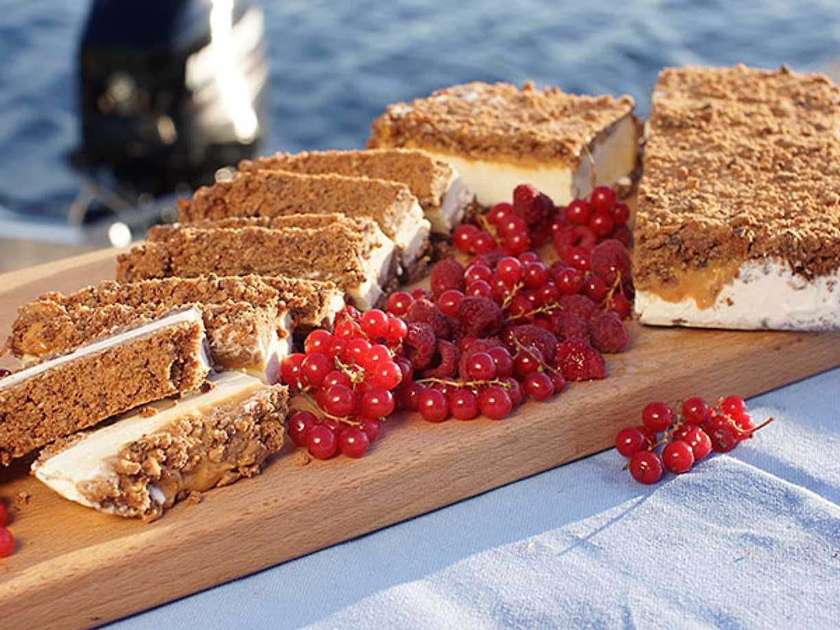 Bars med vaniljglass, mandelcrisp och toffeesås