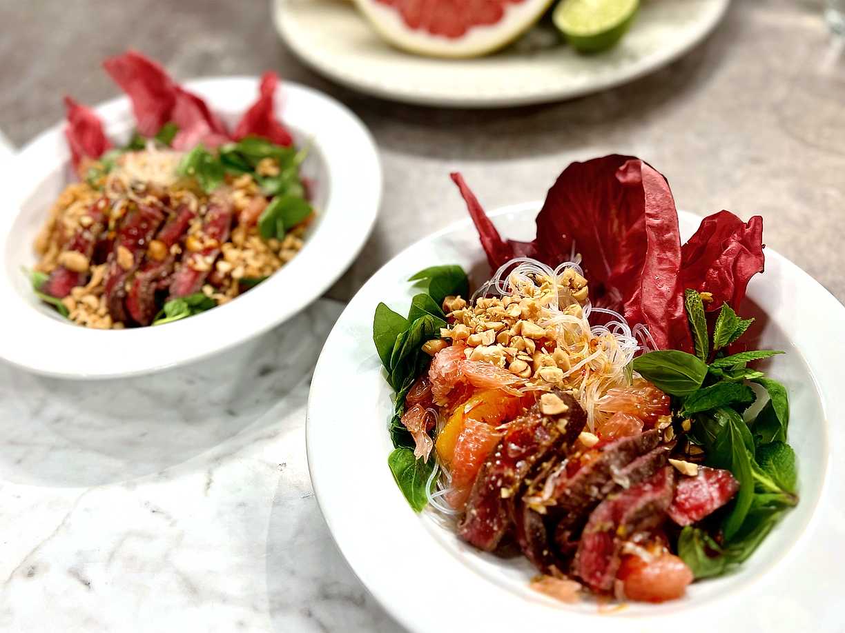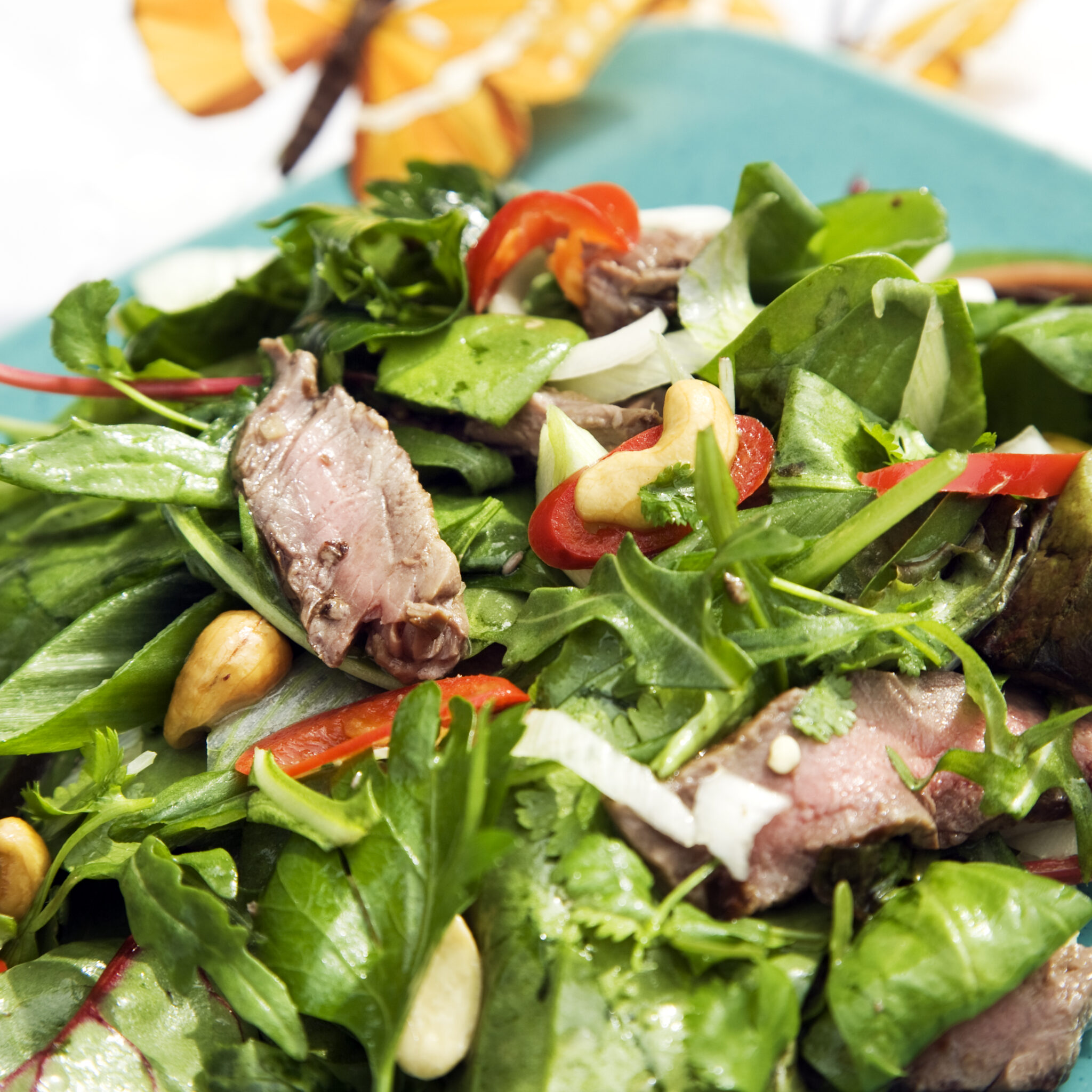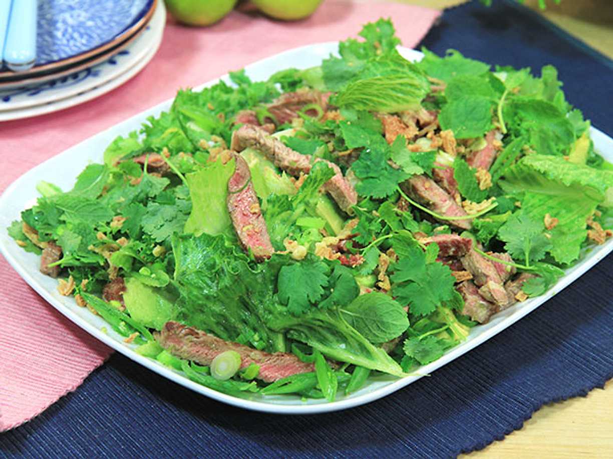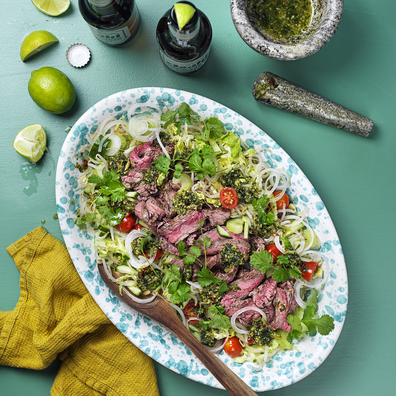 Koreansk biffsallad med rostad baguette och sojamajonnäs