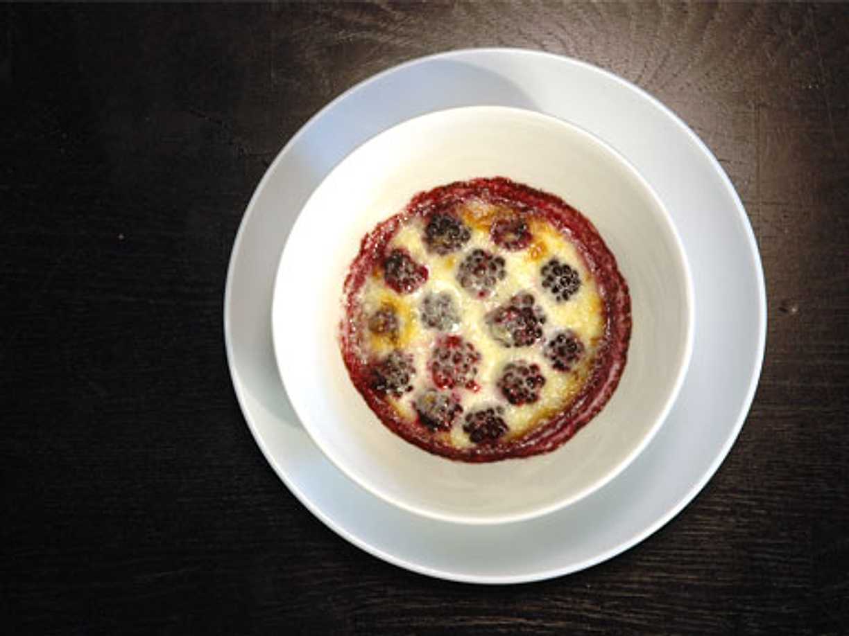 Hemlagad glass i ugn med smak av pärlande dessertvin, björnbär och maräng
