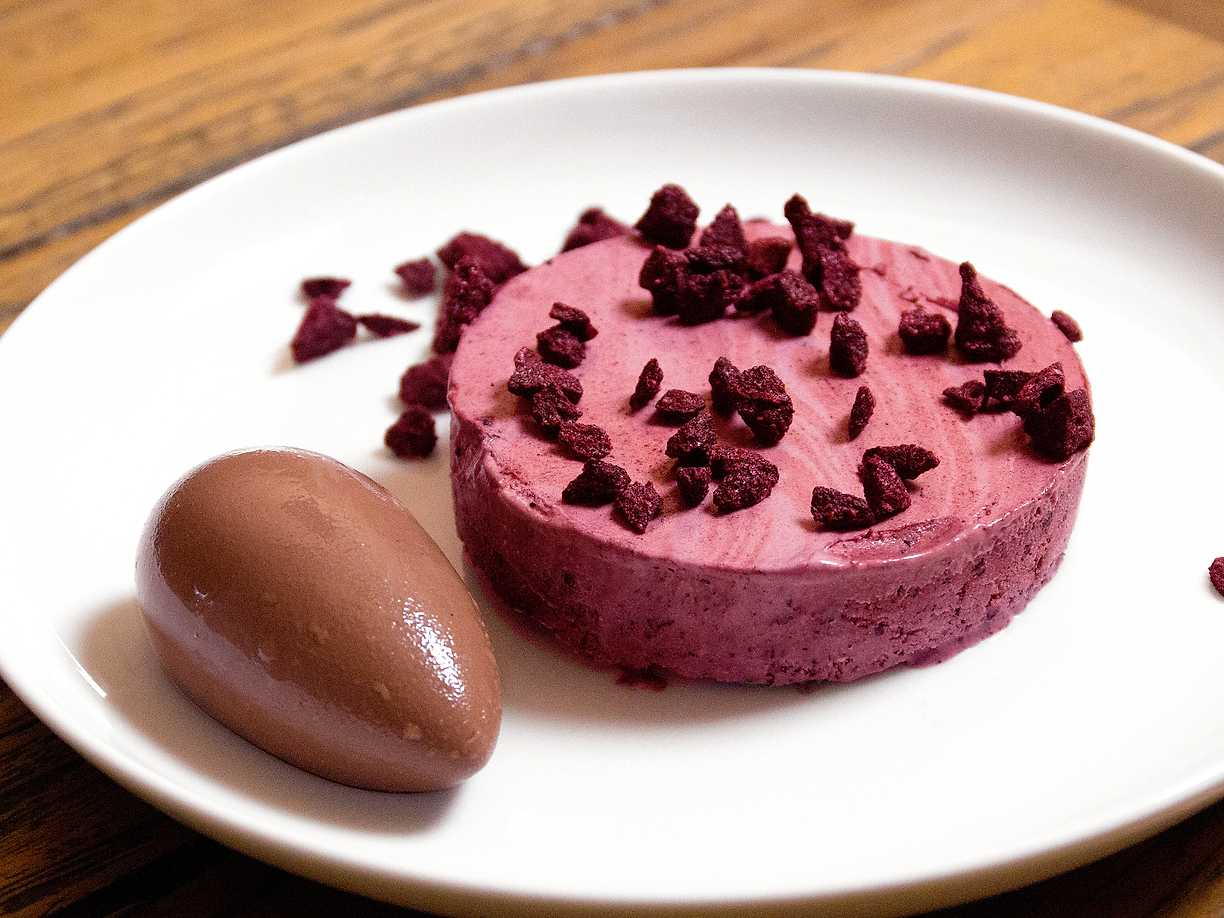 Blåbärsparfait med lemoncurd och mandelbiskvier