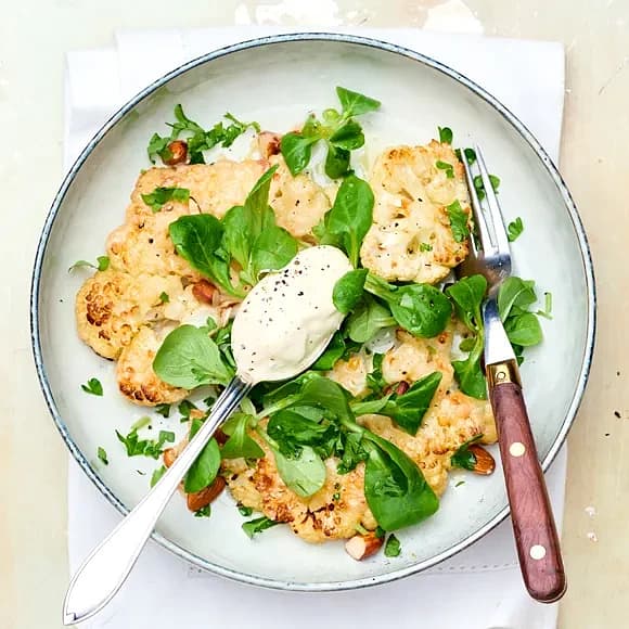 Parmesanrostad blomkål med mandel och citronkräm