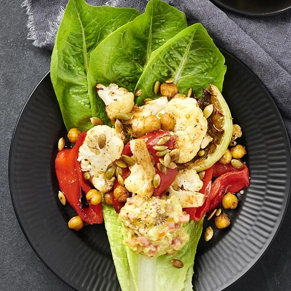 Rostad blomkål och kikärtor med avokadoröra