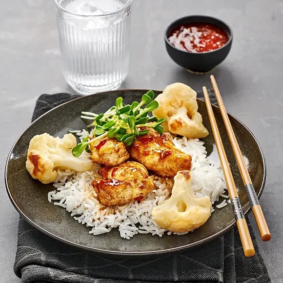 Sötstark kyckling med krispig blomkål
